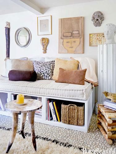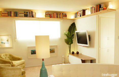 - Use wall space effectively. A long slim shelf will elongate the space, floor to ceiling bookshelves or quirky hanging systems provide much needed storage.