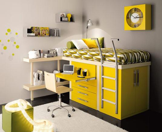 - Use multifunctional furniture. It is also effective to use furniture on legs so that the floor is visible streamlining the look.