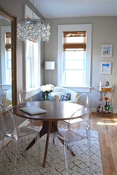 - Hanging mirrors reflect light and by using glass or transparent pieces the light can create the feeling of space.